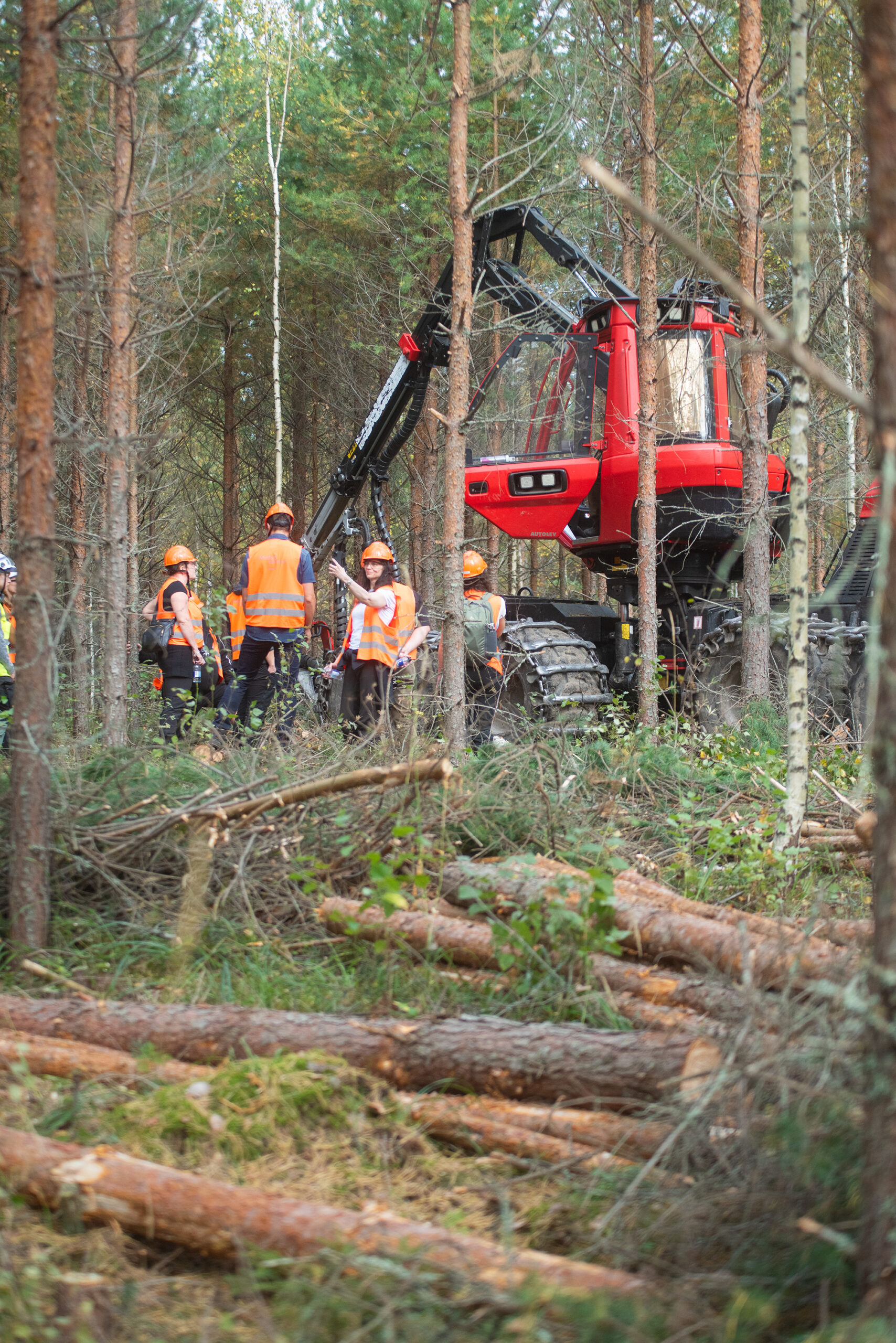 Seuraavaksi paikallinen metsänomistaja esitteli meille omilla tiluksillaan metsänhoidon toimenpiteitä. Tutustuimme mm. harvennushakkuisiin, joilla varmistetaan jäljelle jääville puille tilaa ja valoa kasvaa. Oli silmiä avaavaa nähdä, miten pitkäjänteistä ja suunnitelmallista metsänhoito on. Siihen liittyy yllättävän paljon erilaisia näkökulmia ja pitkälle laskettua analytiikkaa.